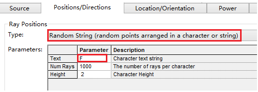除了“Letter F”之外的所有光源的光线位置设定在了孔径光阑位置处,并增加了pre-propagation distance= -8。尽管光线在光瞳处创建,规定的传输方向相对于光线位置在pre-propagation distance之后。这意味着光束沿着Z轴在眼睛的前面以平行光入射,而不是在光瞳处入射。