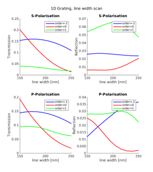 在脚本data_analysis/run_scan_width.m中,光照角度固定时,线栅的宽度从150nm增至250nm。这将产生以下线栅宽度依赖关系: