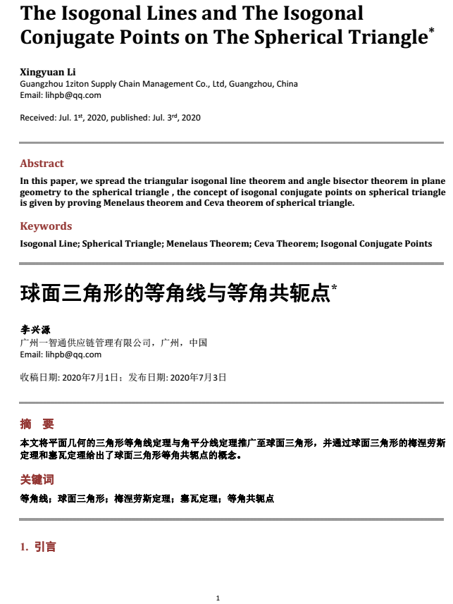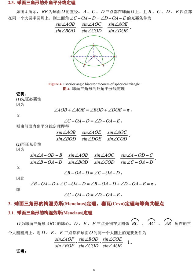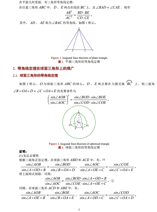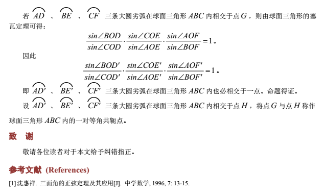 定理和塞瓦定理给出了球面三角形等角共轭点的概念。