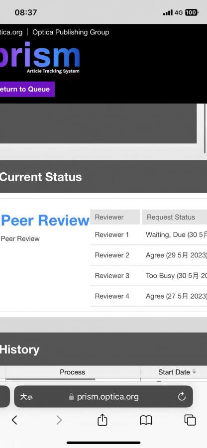 我四月投的,有两个回来意见,一个答应审但是超期几天了还没返回意见