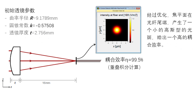 摘要 在现代光学中,光纤应用于各种光学系统中。为了高效使用光功率,光纤耦合透镜一定要精心设计,保证聚焦点与光纤模式匹配。使用VirtualLab中的快速物理光学仿真和参数优化,针对将光耦合到单模光纤的问题,我们展示了具有圆锥表面的透镜的设计。 设计任务 初始设置的评价 参数优化 优化结果的评价 文件信息 |