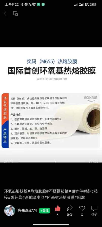 多少年前的东西了,首创个毛线,最简单的配方就是128+650+双氰胺,不过这是热固性的,要做成热塑的选择两官的固化剂就行,问题是东西没啥意义,附着力不如聚氨酯