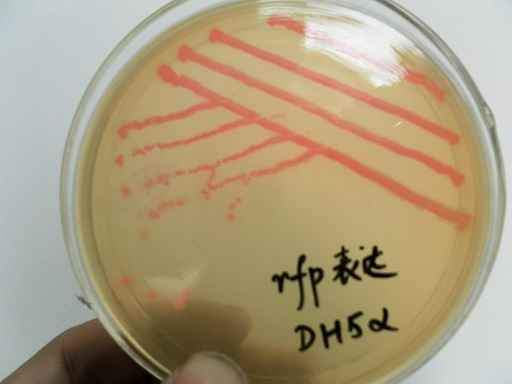 我们实验有表达红色的荧光蛋白的大肠杆菌 ,但是转化到别的菌里面失效了。