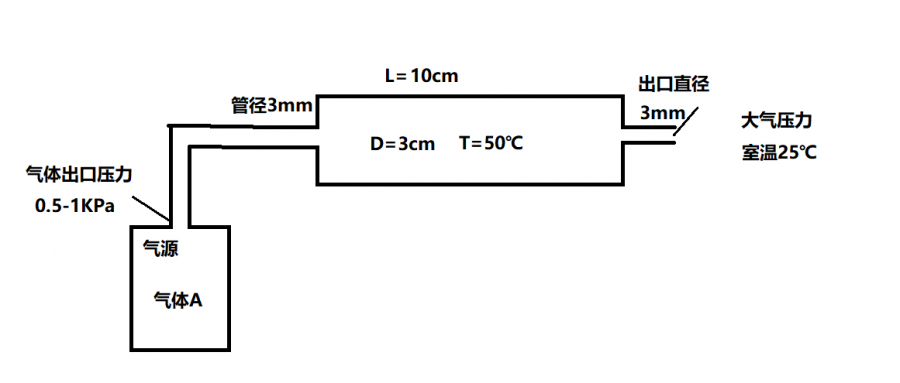 如图所示,气源会持续供气(气体A),流量计出口压力不大也就几百帕,中间有一段粗管,长10厘米直径3厘米,加热到四五十度,把最后的出口管放进水里也确实能看到冒泡,说明管路里是正压,不断有气流流出,出口内径3mm,这个时候空气会扩散进入管路里面吗? 新建位图图像.png |