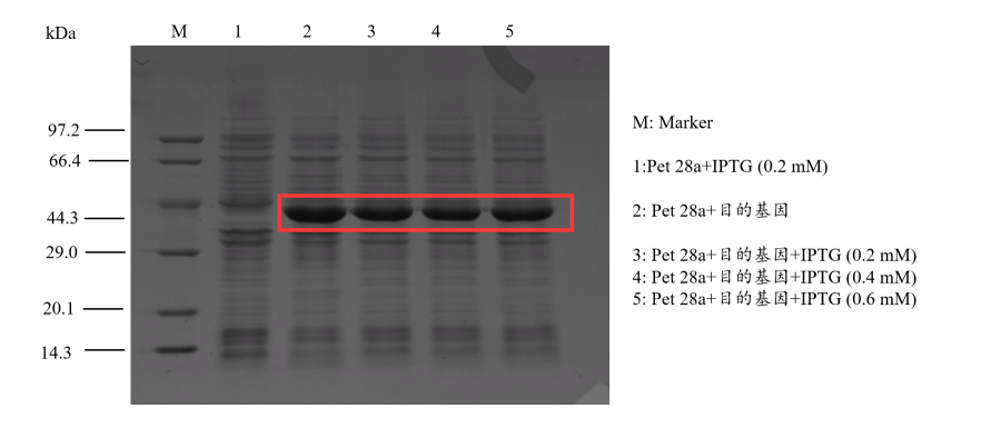 载体pet28a IPTG诱导 0.2-0.6mM,菌体长到0.78OD时开始诱导,诱导温度37℃,诱导时间6小时,发现加了IPTG的诱导组菌体长得少,所以统一诱导组和未诱导组OD值,取菌液进行离心加上样缓冲液煮沸之后跑电泳。结果发现未诱导的比诱导的蛋白表达都高。蛋白条带预测40kDa,位置也对。所以对后续蛋白过柱纯化有影响么 微信图片_20230725095911.png |