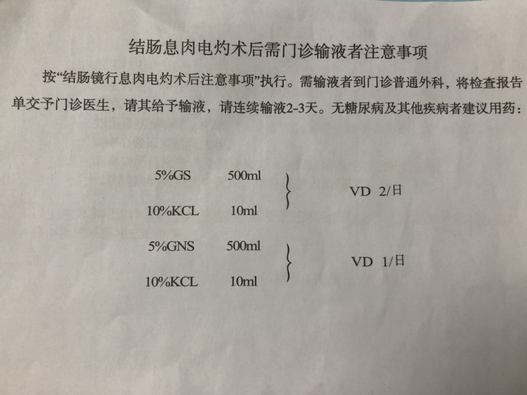 结肠息肉电灼术后需门诊输液者注意事项