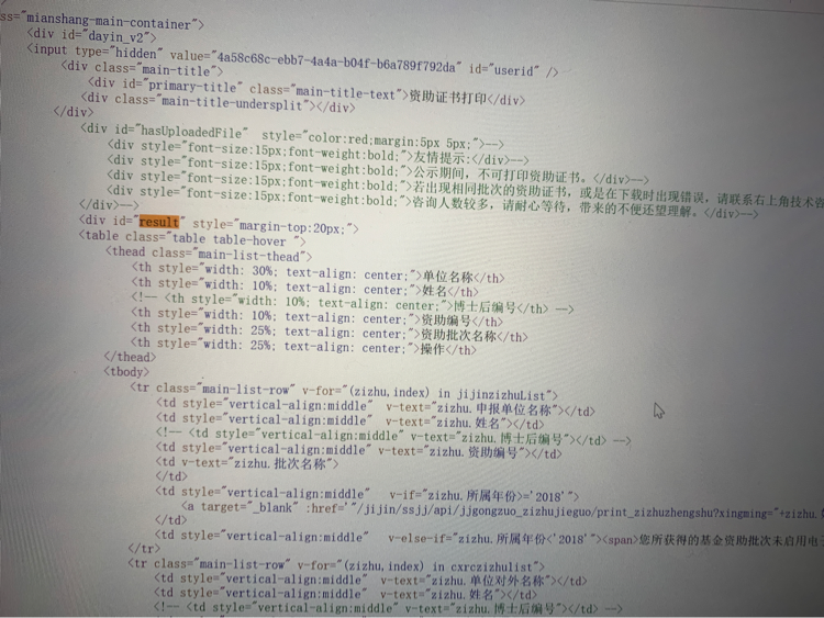 博后面上快要出了,看到有人刷源代码,想问问这批申请的朋友们,在资助证书打印那页的源代码里面,有没有result关键词 发自小木虫IOS客户端 |