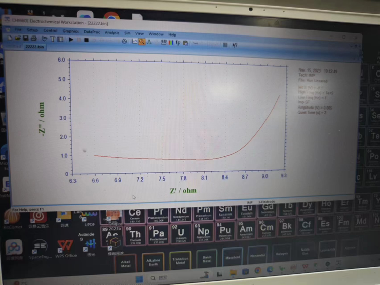 | 本人研究方向阴极析氢催化剂,昨天把催化剂附在在碳布上,用660工作站测量EIS谱,很正常,但是今天复测,在高频区就变成了这个样子,几乎是一条直线,请问这种情况的原因是什么呢(体系1M KOH) |