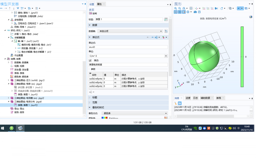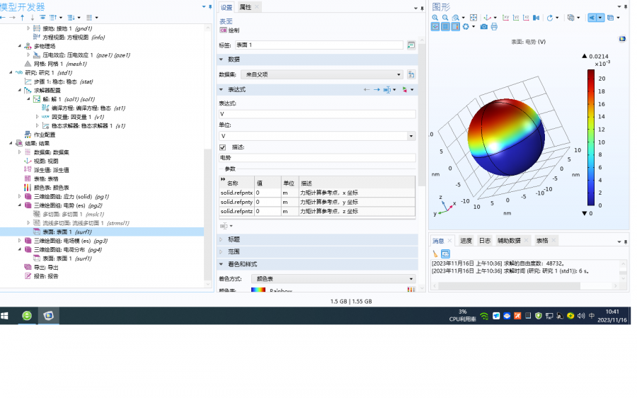 我用钛酸钡的压电性质,拟合了在z方向100 mpa的压力情况下,直径20 nm的钛酸钡纳米粒子的极化情况。的确存在极化电压,但是为什么表面的电荷分布却不显示呢?各位大神,请指教指教吧,多谢了 1.png 2.png |