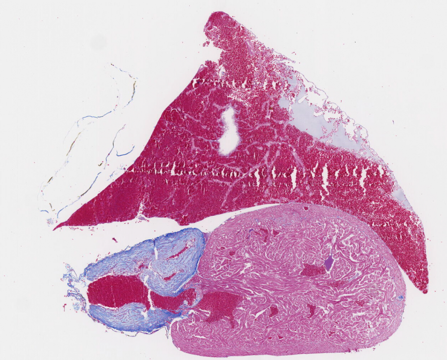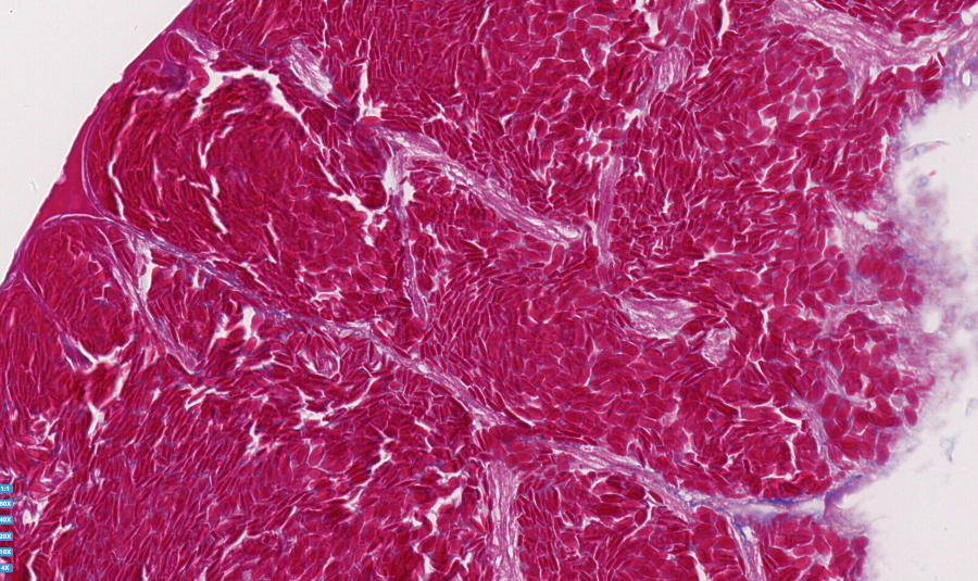 最近做了点斑马鱼心脏切片,HE染色发现心房部位有损伤,感觉像纤维化,就做了MASSON染色,结果好像并没有纤维化。由于小弟不是病理学专业,有没有大神能帮忙看看切片分析一下?图1是HE染色,图2为MASSON,图3为图2的局部放大。到底有没有纤维化?若没有,HE染色能否看出是何种损伤? 1.jpg 2.png 3.png |