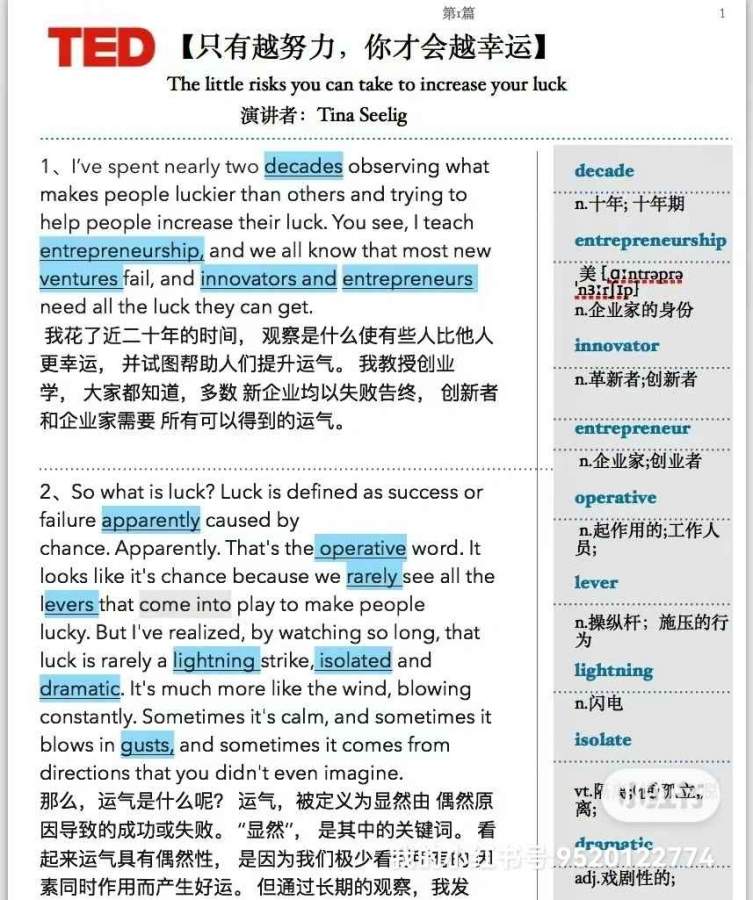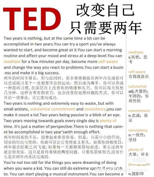TED双语注释笔记电子版100篇精品 提升学习效率 高清电子版可打印,详细注释,方便学习, 适合高中,本科,研究生 用于准备四六级,雅思托福,日常口语练习 不努力怎么知道自己是否可以!! 发自小木虫Android客户端 |
