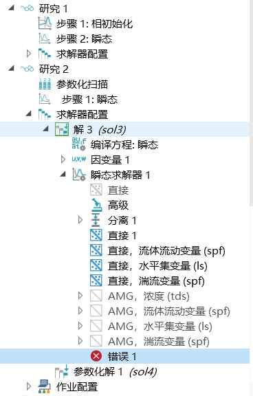 我在做一个鼓泡塔模型,C_T2为液体中T2的浓度,对这个浓度进行的参数化扫描,扫描值为10 20 30 40 50 60 70 80 90 100,但每次一点研究就显示第一个扫描值出错,另外两个模型也是第一个扫描值出错,别人做过的模型在我这就这样报错,请问各位大佬是我的扫描操作步骤不对?还是什么其他的原因呢?