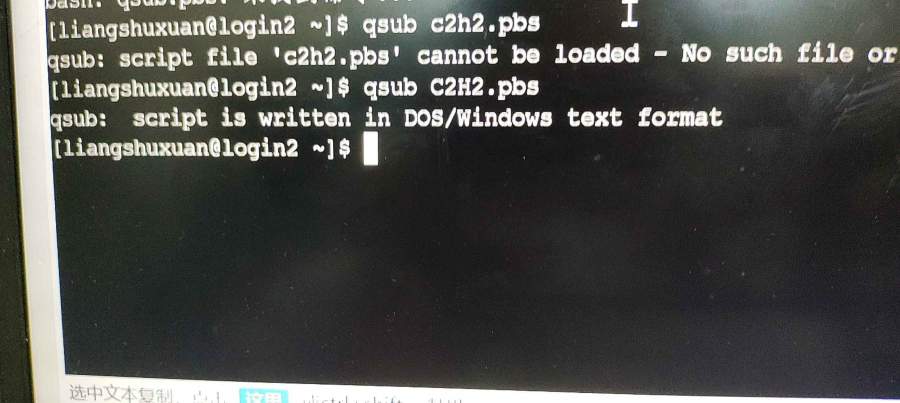 下图1是pbs脚本(改了一些自己的内容,其他都是固定的没改),登录超算后qsub c2h2.pbs,显示图2(黑色背景),说pbs文件是用windows编写的。提交不上,麻烦大佬看看哪有问题 发自小木虫Android客户端 |