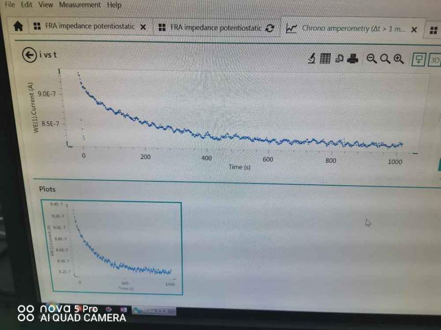 麻烦各位大佬替我解决目前我实验遇到的问题。 将自己制备的聚合物电解质膜在增塑剂浸泡一段时间后,组装成锂对锂的纽扣电池,进行LSV测试。采用的仪器是AUTOLAB 软件是Nova 2.1.3。 为什么组装的纽扣电池测试出来的阻抗会出现图片1的现象,欧姆电阻较小但是界面电阻那么大,什么原因会导致出现这种情况?麻烦各位大神解释一下? 还有组装的电池测试的CA曲线会出现图2 这样的情况,是由于我使用的增塑剂的问题,还是我制备的聚合物电解质膜的问题? 发自小木虫Android客户端 |