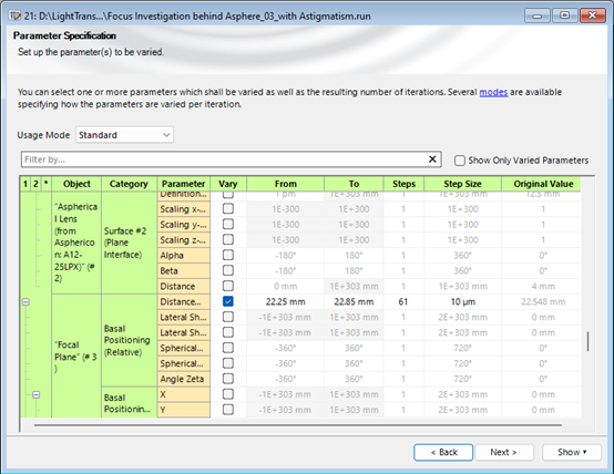 为了实现对焦点区域的z方向扫描,可以进行parameter run。通过这个工具,用户可以很容易地改变一个单独的参数或一组参数。