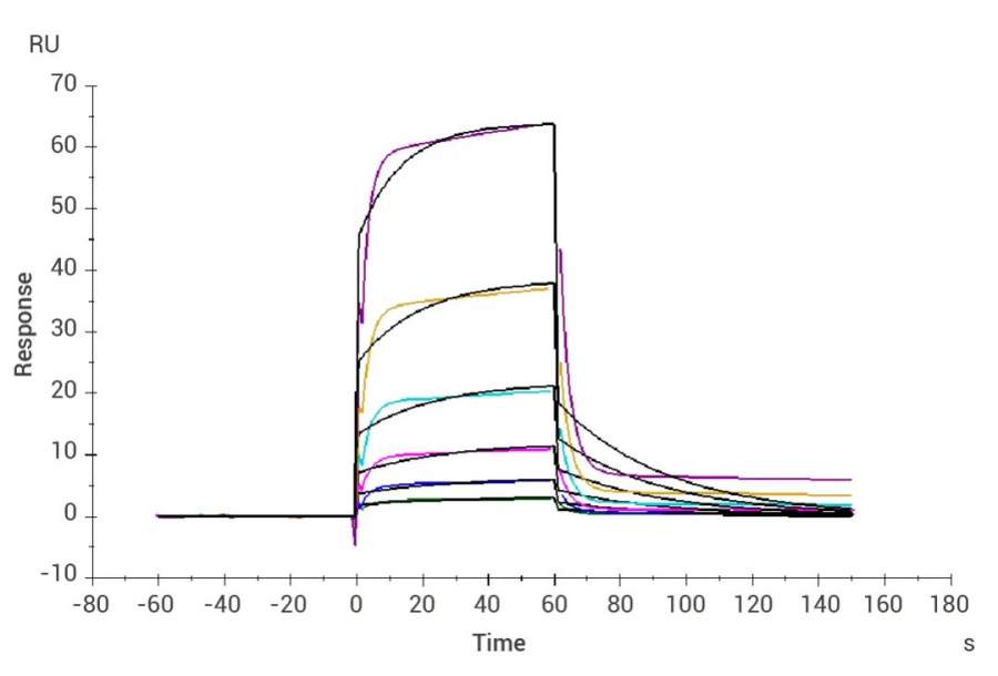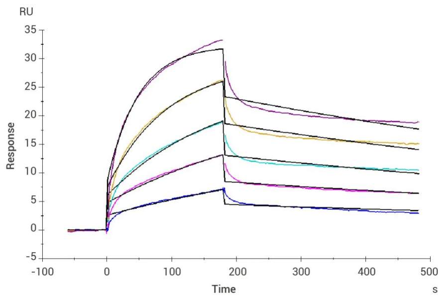 图 3. nkp30, human (hfc) captured on cm5 chip via protein a can bind biotinylated b7-h6, human (his-avi) (hy-p78076)with an affinity constant of 0.275 μm as determined in spr assay.