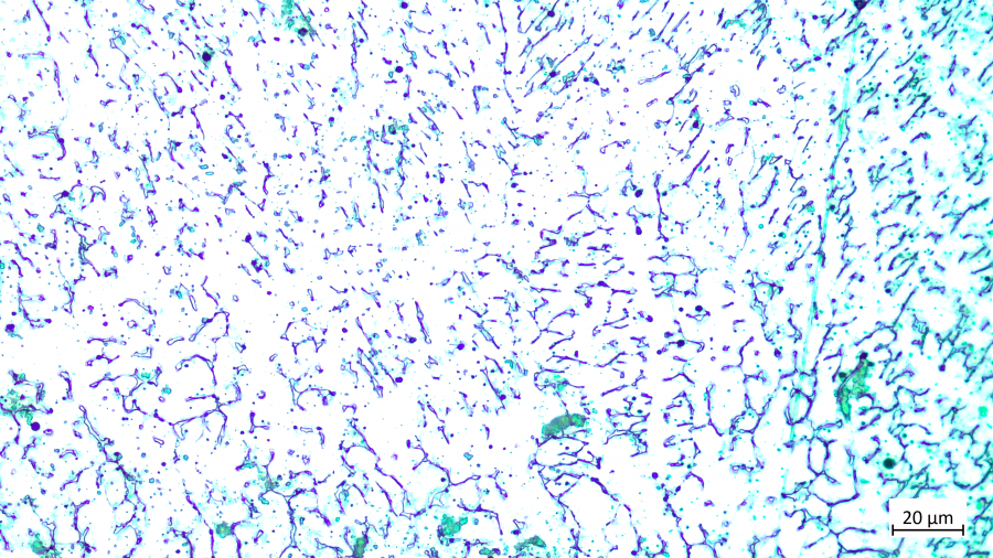 你这是拿什么腐蚀的吗?看起来很像delta-ferrite组织。 不腐蚀的情况下,那光镜偏离聚焦看看,或者去SEM下拿背散射直接看看。 |