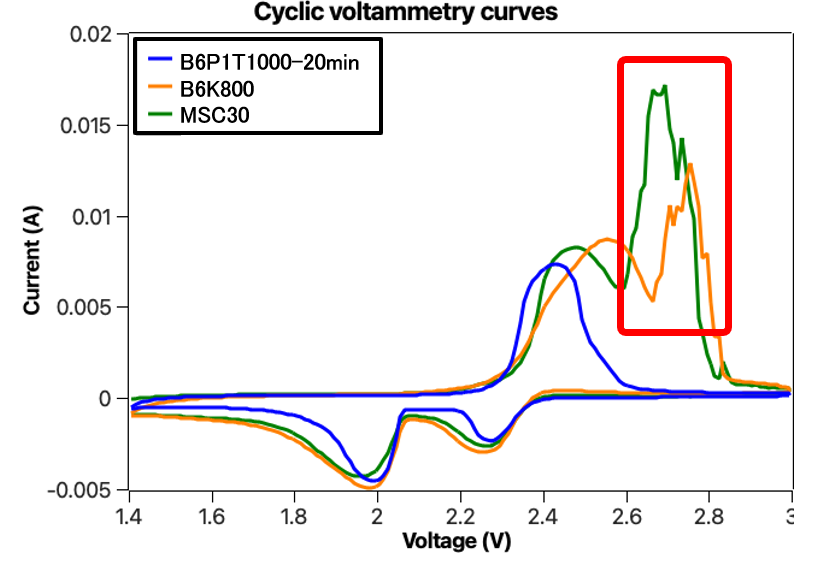 我在一个传统碳材料的课题组,目前只有我一个人开始做Li-S电池。尝试了几种多孔碳载硫,作正极进行了充放电测试,循环伏安法测试。 遇到了一些问题,自己查阅了一些资料也没有头绪。希望各位老师,前辈可以给一些指点。 1,关于循环伏安法曲线图,第一张图中红框内杂乱的氧化峰可能是什么原因导致的。另外我发现经过多次充放电循环后,这些氧化峰会减弱,直至消失。 2,第二张图中,红色的曲线说明了什么。我重复了几次实验还是相同的曲线。 恳请各位老师,前辈指教。非常感谢!新年快乐! 屏幕截图 2024-02-12 190851.png 图片1.png@Gamry-电化学@langzhizhou@a88592718@louderbe@VIMPILE |