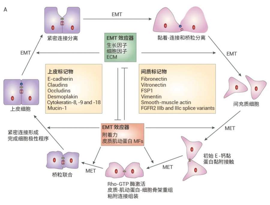 图 1. 上皮细胞可塑性的循环及诱导细胞 EMT 发生[1]。