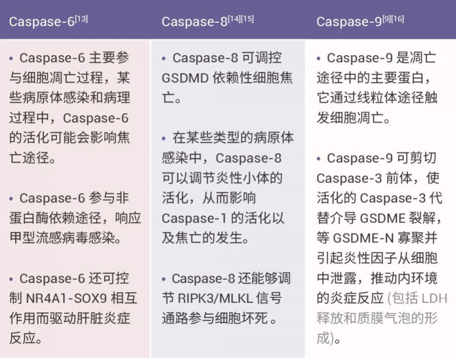 Caspase-6、Caspase-8 和 Caspase-9 的不同调节也会影响焦亡途径。小 M 为大家整理在下面啦~