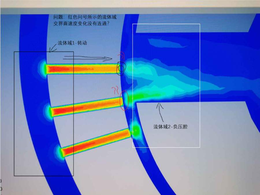 如图所示,两个流体域交界面的速度变化没有连通,原因是什么呢? 已有1人参与