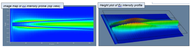 光源在时域中设置为CW( = 1.55 um),在空间域上设置为高斯横向分布,并且位于二氧化硅波导的硅纸尖端。