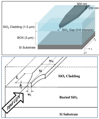 在高约束芯片上与亚微米波导上耦合光的两种主要方法是光栅或锥形耦合器。[1]