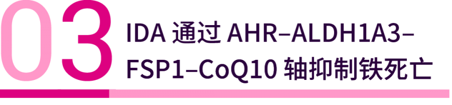 图 4. IDA 通过 AHR-ALDH1A3-FSP1-CoQ10 轴抑制铁死亡[2]。