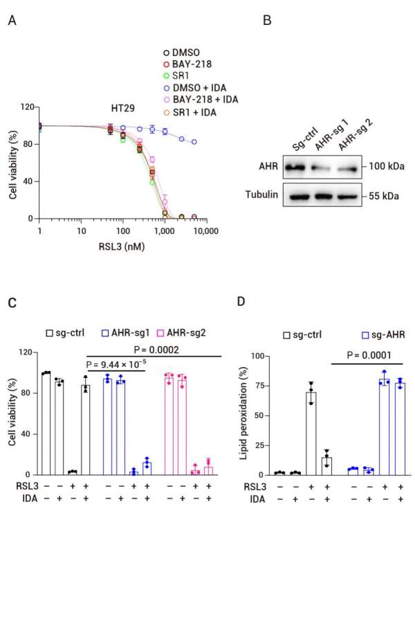 图 3. AHR 和 FSP1 是 IDA 抑制铁死亡所必需的[2]。