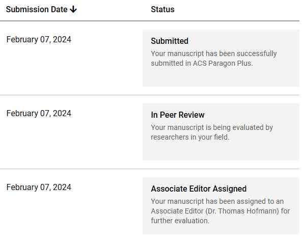 24.02.07submitted,然后当天in peer review和associated editor assigned。主页一直显示under review。请问这个状态是编辑还在看吗?还是说在邀请审稿人了?谢谢大家,祝大家投稿顺利! 发自小木虫Android客户端 |