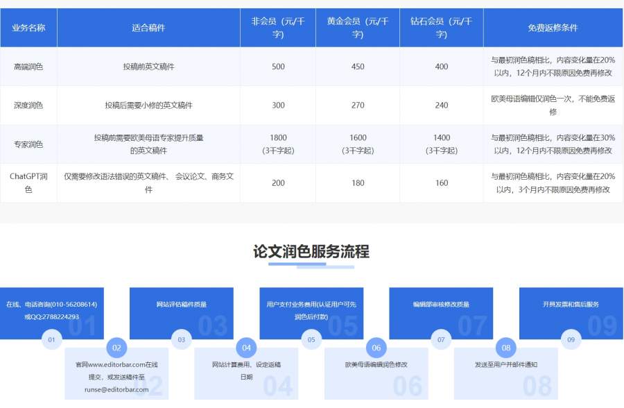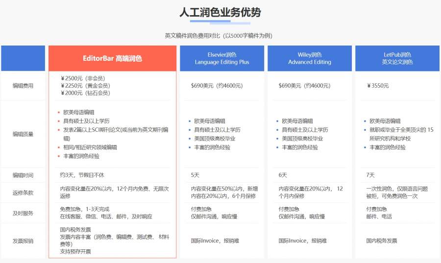 ,欧美母语专业编辑,多次修改至发表,适合投稿前稿件,钻石会员价400元/千单词