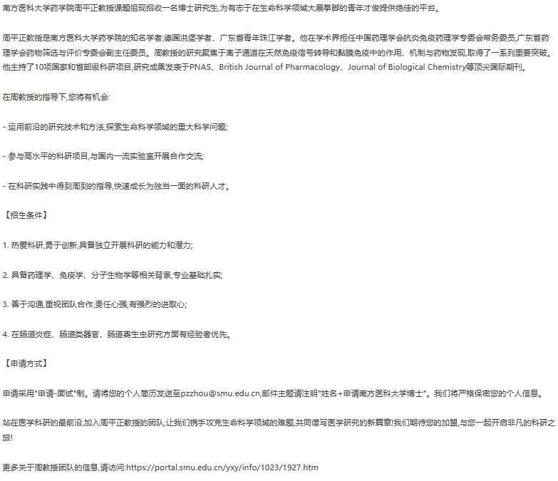 南方医科大学药学院周平正团队招收博士 发自小木虫Android客户端 |
