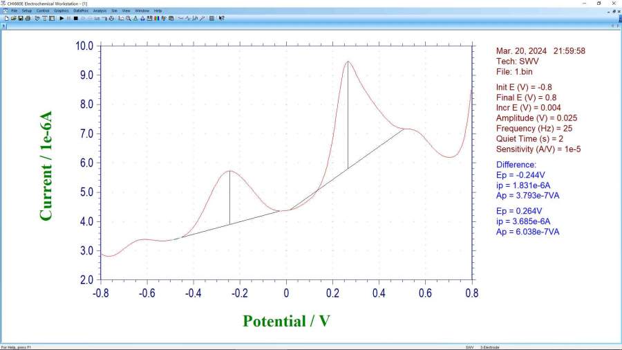 谢谢你,pbs重新配了之后还会出峰,扫了cv发现电位差已经大于100mv了,感觉是是电极没磨好的原因,然后换了玻碳电极,裸玻碳电极在pbs里扫swv没有峰,但是镀金后扫swv就出现-0.3v和0.3v左右的峰 发自小木虫Android客户端 |