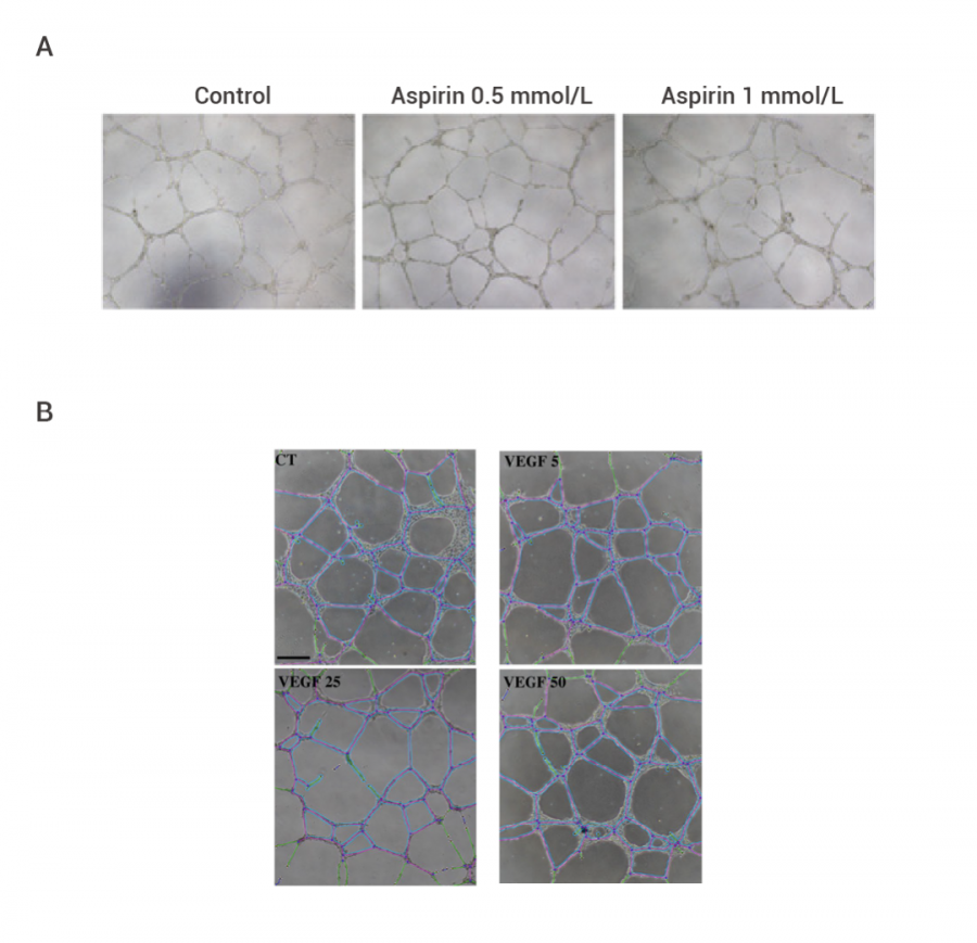 由于内皮细胞在基底膜提取物上培养时可形成三维毛细血管样管状结构,血管生成实验成为一种简单、定量、可靠且功能强大的模型,常用于研究抑制剂和激活剂对血管生成的影响。