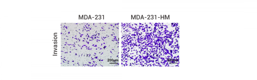 图 4. mda-231 细胞和 mda-231-hm 细胞的侵袭实验[5]。