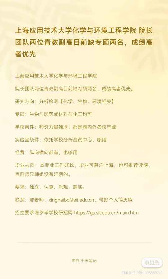 邢老师,xinghaibo@sit.edu.cn,带好个人简历哦 招生要求请参考学校研招网 https://gs.sit.edu.cn/main.htm 发自小木虫Android客户端 |