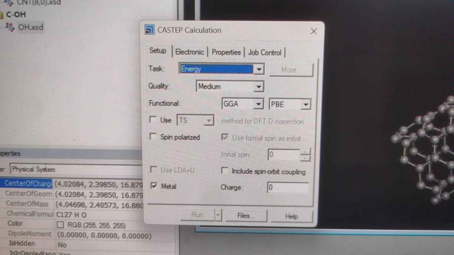 我想用material studio计算一下这个碳纳米管的能量,但是run不了,友友们有什么方法吗?