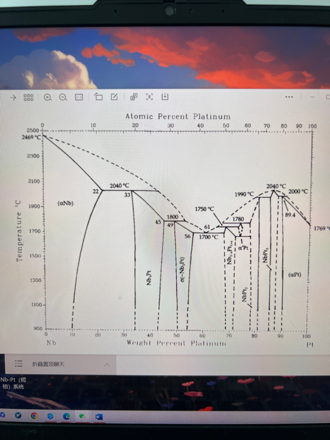 想咨询一下,有没有懂行的大佬知道铌铂相图低于1100摄氏度下面的虚线是什么意思?如下图,本人理解可能是目前没有研究明白或者是生成的第二相不稳定。