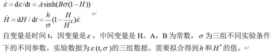 将第一式代入第二式 得到 微分方程组。将各个sigma代入方程,实际上就是3组微分方程组 对应三组数据。目标函数可设置为三组微分方程残差平方和 发自小木虫Android客户端 |