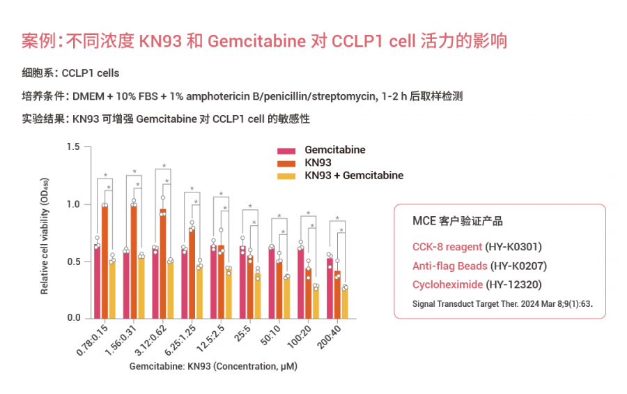 CCK-8 检测细胞活力发现 KN93 可以增强 Gemcitabine 对 CCLP1 的敏感性。