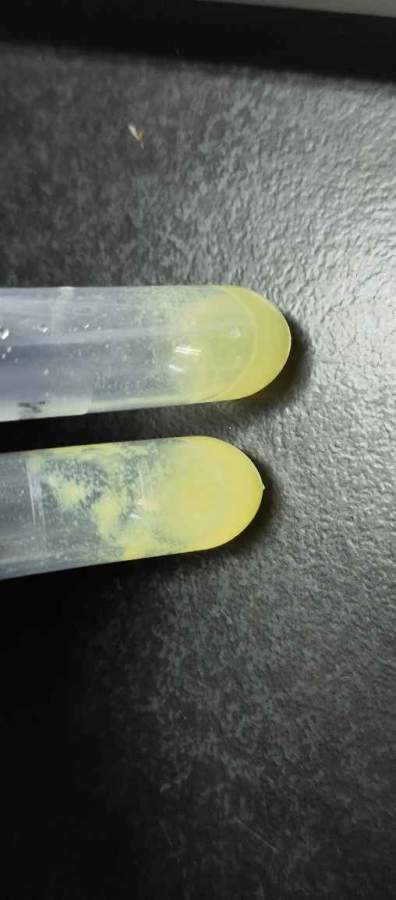 求问小鼠腹腔注射可以注射混悬液吗?想注射的药液是中药单体黄芩素,用含10%DMSO的PBS溶解后发现药没有完全溶解(如图所示)。想请问一下小鼠腹腔注射可以直接注射这种混悬液吗?还是说一定要注射完全溶解的溶液,后期需要再加一些助溶剂?如果需要加助溶剂的话可以请教一下助溶剂的类型和量的限制吗?谢谢大家!