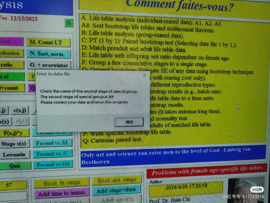 齐心教授的TWOSEX两性生命表软件读取数据出现下图错误提示,text文本数据不知道哪里出现问题,采用的记录方法为孤雌生殖,有友友会有这个生命表吗? 发自小木虫Android客户端 |