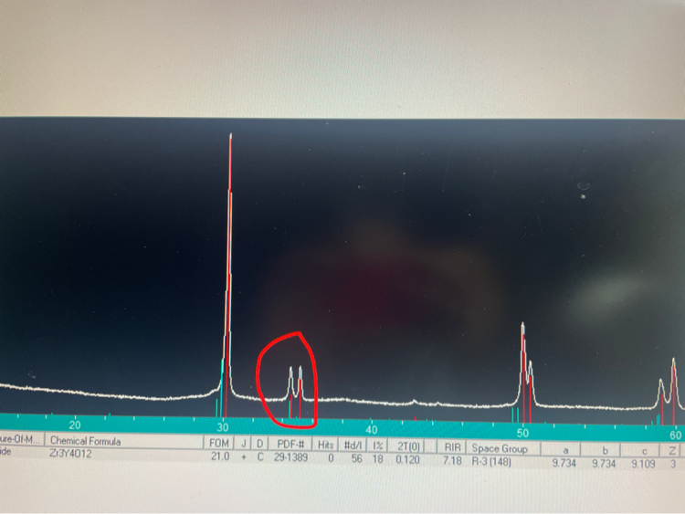 求问氧化锆XRD 四方相34-36之间的两个峰是左矮右高,但我测出来是一样高的,那左边那个峰是不是复合了别的物相呢另外是应该按I%高低排序选拟合峰吗?d/I和RIR是什么意思啊 @chinaworm 发自小木虫IOS客户端 |