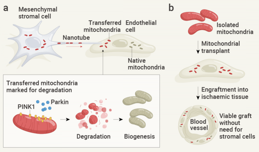 从基质细胞转移过来的线粒体不需要有增强内皮细胞移植物的功能,因为转移过来的线粒体在一个叫做线粒体自噬的过程中迅速降解,而不是与现有的线粒体池融合。