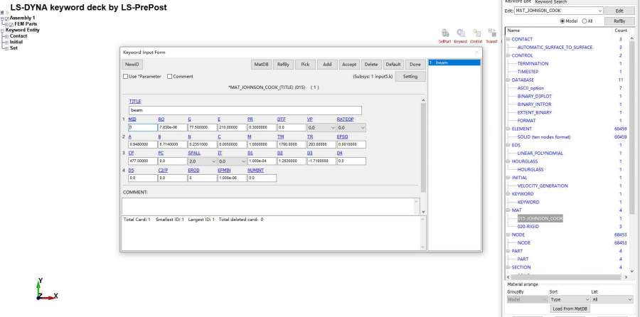 各位大佬帮忙看一下做夏比冲击模拟过程中,设置了自动接触,但冲击刀也会穿透样品,不是在缺口位置开始断裂;还有就是在模拟过程中样品有明显的回弹性,这是哪个地方设置不对造成的啊?请大佬帮忙看一下,k文件太长了传不上来,可以发邮件过去 发自小木虫Android客户端 |