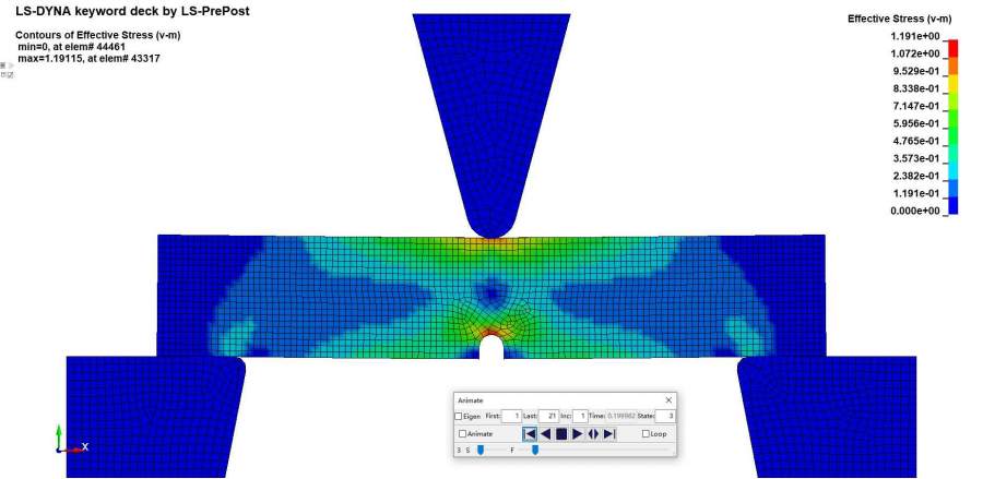 lsdyna 夏比冲击模拟 冲击刀穿透梁和梁冲击过程中回弹问题