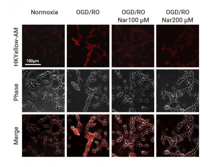 [1] Thannickal VJ, et al. Reactive oxygen species in cell signaling. Am J Physiol Lung Cell Mol Physiol. 2000 Dec;279(6):L1005-28. [2] Arfin S,et al. Oxidative Stress in Cancer Cell Metabolism. Antioxidants (Basel). 2021 Apr 22;10(5):642. [3] Griendling KK, et al. Oxidative stress and cardiovascular injury: Part I: basic mechanisms and in vivo monitoring of ROS. Circulation. 2003 Oct 21;108(16):1912-6. [4] Khan AQ, et al. Reactive oxygen species (ROS) in cancer pathogenesis and therapy: An update on the role of ROS in anticancer action of benzophenanthridine alkaloids. Biomed Pharmacother. 2021 Nov;143:112142. [5] Murphy MP, et al. Guidelines for measuring reactive oxygen species and oxidative damage in cells and in vivo. Nat Metab. 2022 Jun;4(6):651-662. [6] Hu JJ, et al. Fluorescent Probe HKSOX-1 for Imaging and Detection of Endogenous Superoxide in Live Cells and In Vivo. J Am Chem Soc. 2015 Jun 3;137(21):6837-43.[7] Ye S,et al. Tandem Payne/Dakin Reaction: A New Strategy for Hydrogen Peroxide Detection and Molecular Imaging. Angew Chem Int Ed Engl. 2018 Aug 6;57(32):10173-10177. [8] Bai X, et al. HKOH-1: A Highly Sensitive and Selective Fluorescent Probe for Detecting Endogenous Hydroxyl Radicals in Living Cells. Angew Chem Int Ed Engl. 2017 Oct 9;56(42):12873-12877. [9] Xiaoyu Bai, et al. HKOCl-4: a rhodol-based yellow fluorescent probe for the detection of hypochlorous acid in living cells and tissues. Organic Chemistry_Frontiers. Issue 8, 2020.[10] Feng J,et al. Naringin Attenuates Cerebral Ischemia-Reperfusion Injury Through Inhibiting Peroxynitrite-Mediated Mitophagy Activation. Mol Neurobiol. 2018 Dec;55(12):9029-9042.