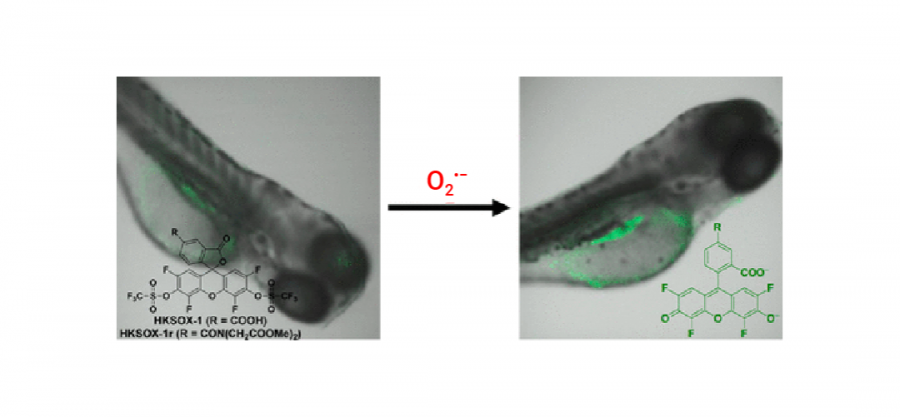 超氧阴离子自由基 (O2•-) 一直被认为是一种重要的细胞信号分子,参与先天免疫和代谢稳态等多种生理和病理过程。O2•- 的异常产生可导致铁硫 (Fe-S) 蛋白和半胱氨酸硫醇等生物分子的氧化损伤,或直接诱导细菌和哺乳动物细胞死亡。其二次产物,如过氧化氢 (H2O2)、羟基自由基 (OH)、过氧亚硝酸盐 (ONOO-) 和次氯酸(HOCI),也参与信号转导和多种病理状况。