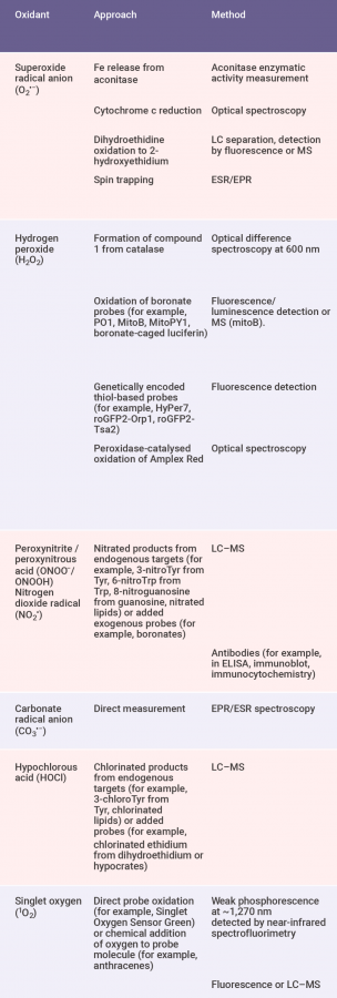 表 1. 检测/定量活性氧的方法 (不同环境)[5]。