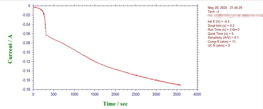 辰华电化学工作站做It测试时,曲线逐渐增大,求助大佬